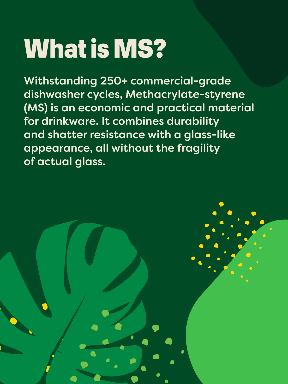 Withstands over 250 commercial-grade dishwasher cycles.